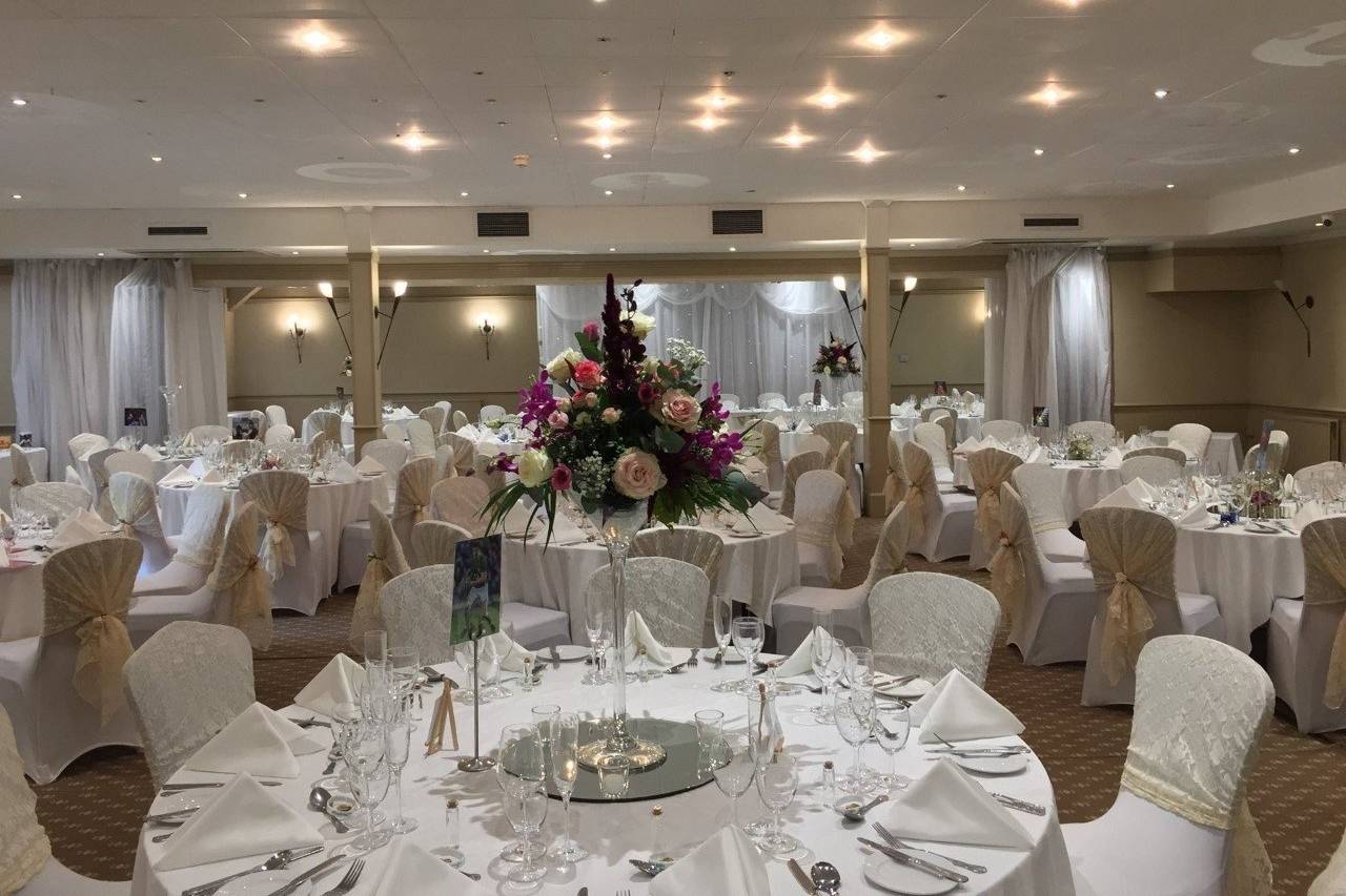 Overlooking the gardens, the Garden Room Restaurant offers modern cuisine. Both the lounge bar and the informal Brasserie in the Health Club serve afternoon tea, light snacks, and drinks.